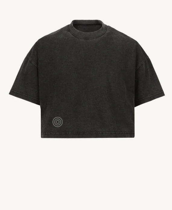 T-Shirt verkürzt und übergroß (croppped oversized) mit Rundhalsausschnitt, hergestellt aus 100% Bio-Baumwolle.
